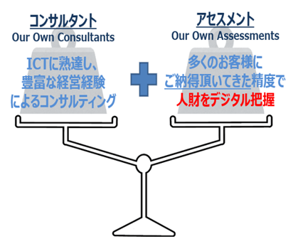 この「チカラ」により、アセスメントでデジタル化した一人ひとりの人財データをコンサルタントが"読み込み"、経営者様の想いを大切にしながら、貴社人財・組織の「チカラ」を見える化し、経営者様に戦略的なご示唆を提供致しております。
