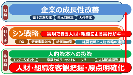 企業の成長を目的とする様々な戦略提案があります。しかし、どのような素晴らしい戦略企画、昨今のエンゲージメントの向上、ジョブ型マネジメントの投入、DX組織の構築などには、自社の人財・組織の状況、バランスを感情に捕らわれる事のない、十分な情報収集と計画的な行動が必要です。